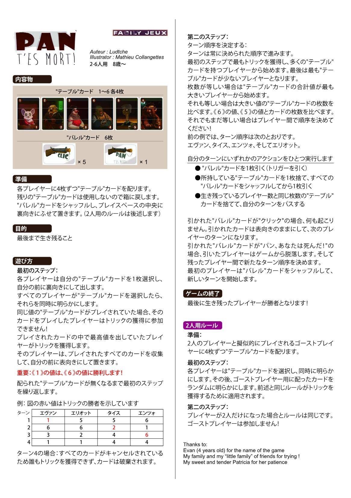 Si c’est un  » Clic  » c’est au joueur suivant par contre si c’est  » Pan, t’es mort ! » ce joueur est éliminé !